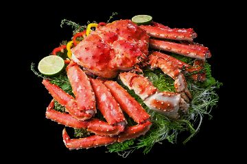 Камчатский краб — крупный морской обитатель Дальнего Востока России, известный своими мясистыми конечностями и насыщенным вкусом. Его панцирь окрашен в буро-красные оттенки, размах ног достигает метра и больше. Ценится гурманами всего мира благодаря нежному белому мясу, богатому белком и полезными микроэлементами.